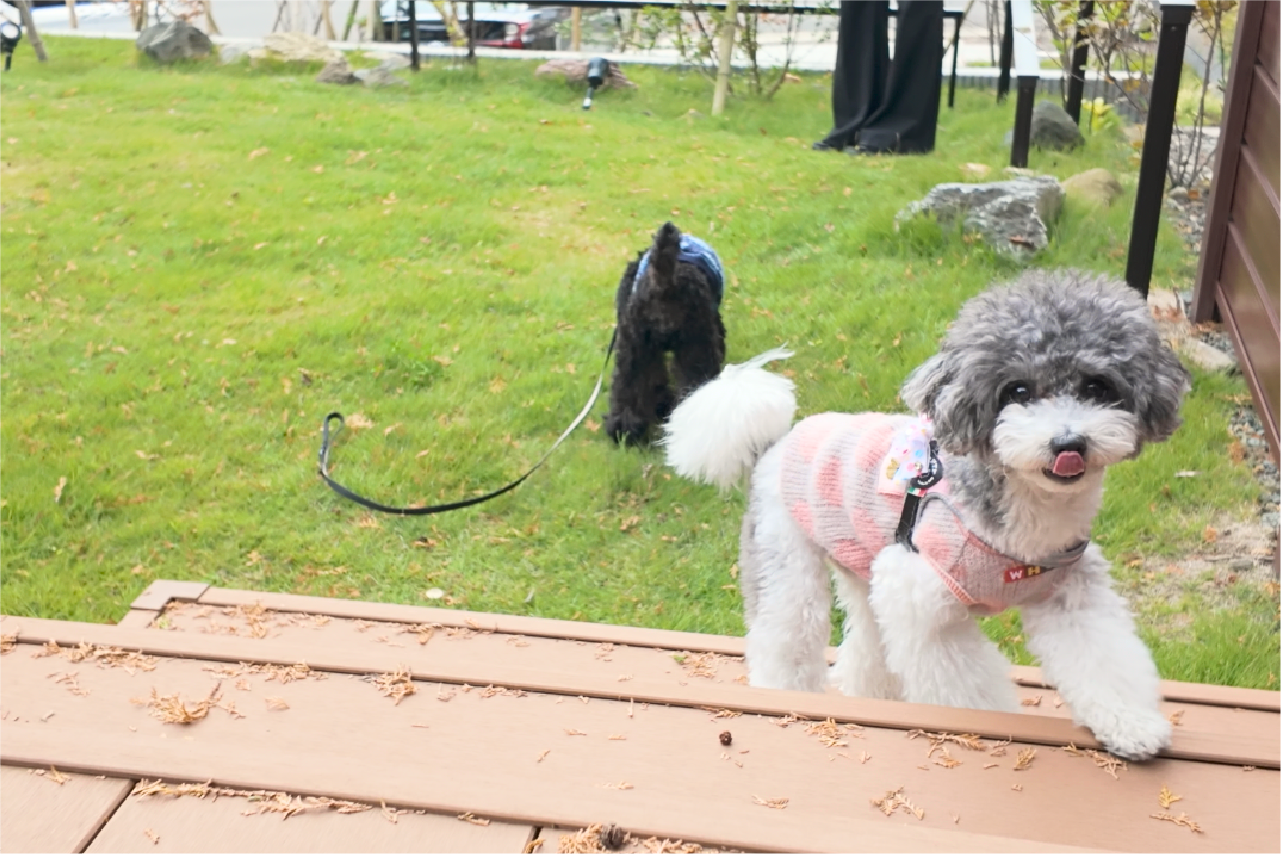 デッキを降りると、客室専用のお庭を備えています。愛犬と一緒に外の空気を感じながらお過ごしいただけます。