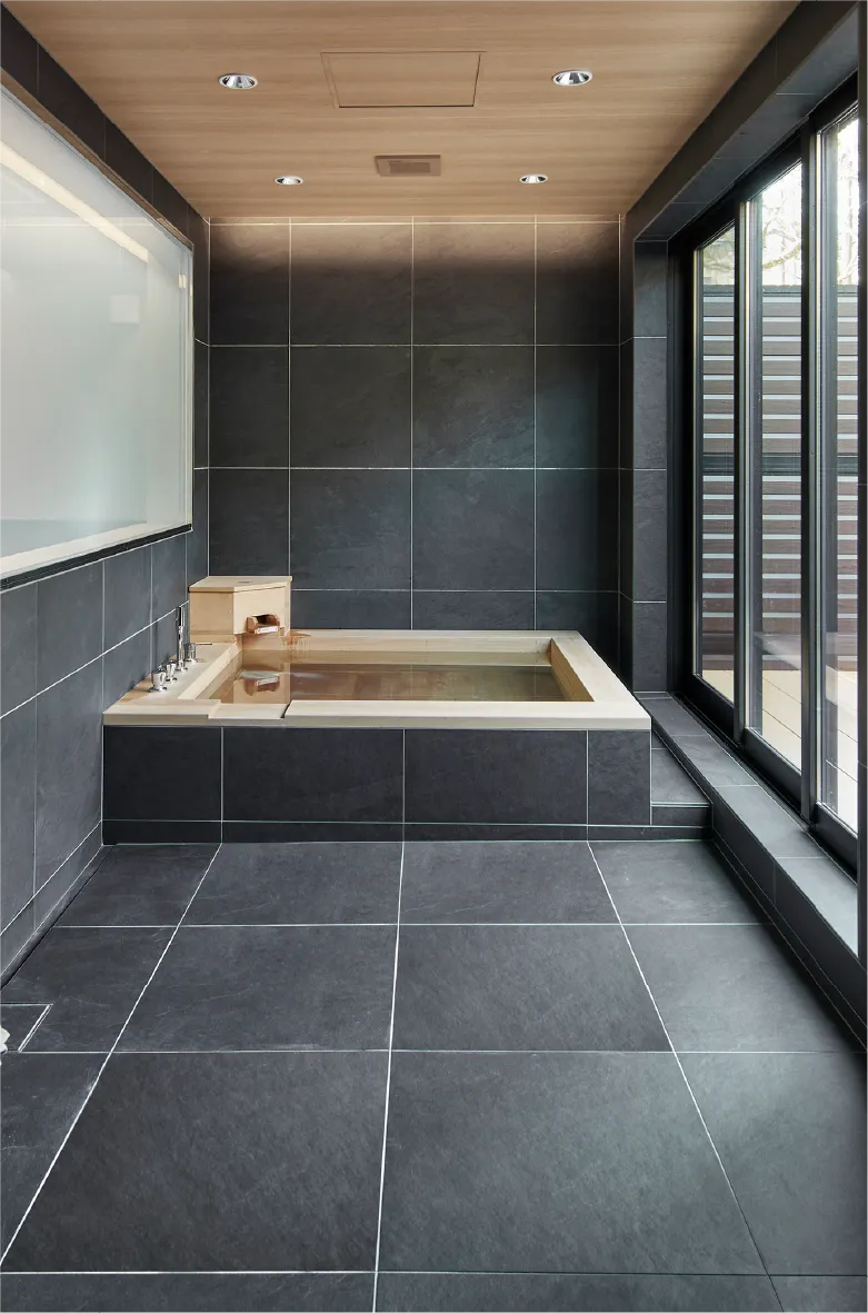 また、開放感のある広さを備えた浴室では、源泉かけ流し温泉をより快適にお楽しみいただけます。